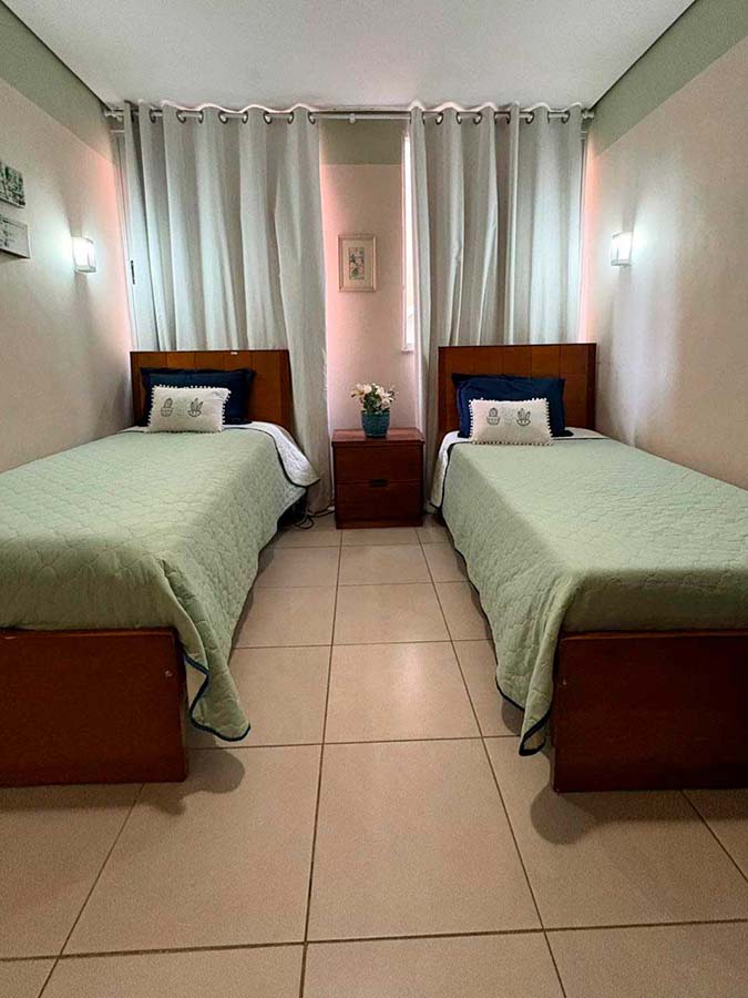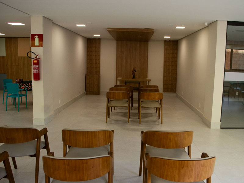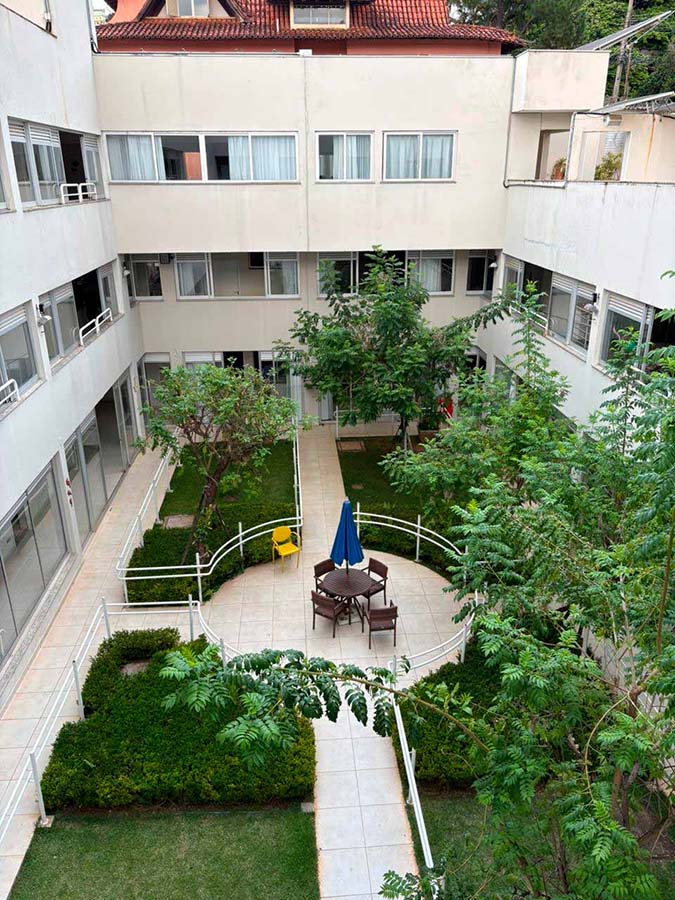 Possui suítes individuais, duplas e triplas com iluminação e vistas privilegiadas. Jardins, estúdio de fisioterapia, academia ao ar livre, solário, salão de beleza, capela e espaços de convivência.